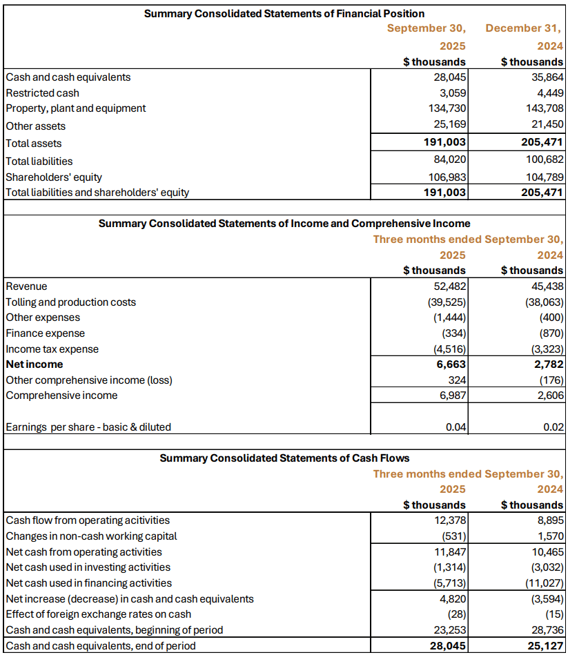 “We are pleased to report strong financial results for the third quarter of 2025. Our operation, Minera Valle