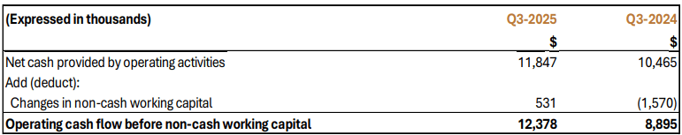 $11.8 million (Q3-2024: $10.5 million) after changes in working capital in the period.