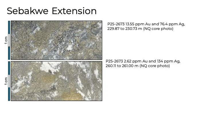 - A newly defined target with high-grade gold intercepted proximal to the existing Premier mill facility and outside the current resource area, near the historic Sebakwe mine. Results include: 3.9m @ 16.20 g/t Au & 68.0 g/t Ag in hole P25-2673 and 1.3m @ 32.40 g/t Au & 9.1g/t Ag in hole P25-2683.