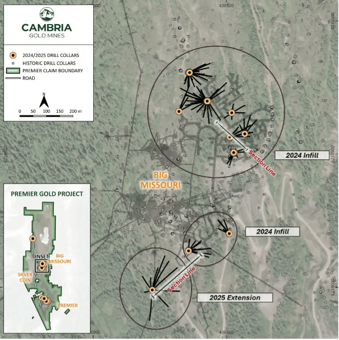 “The identification of high-grade gold mineralization proximal to the Big Missouri and PNL deposits demonstrates the strong resource expansion potential at the Premier Gold Project; these results will help inform remodelling work as we redefine Big Missouri’s geological potential and the high-grade gold results 600 meters north of the PNL deposit are highly encouraging,“ said Robert McLeod, President and CEO of Cambria Gold Mines. “Our 2026 drilling program has recently commenced and will target upgrading and expansion of current Mineral Resources.”