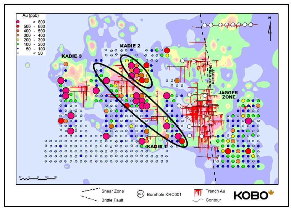 Kobo has only explored 15% of the entire Kossou permit and recently identified very high gold soil geochemistry anomalies at the newly discovered Kadie Zone, which will soon be explored as part of the company’s upcoming drill program.