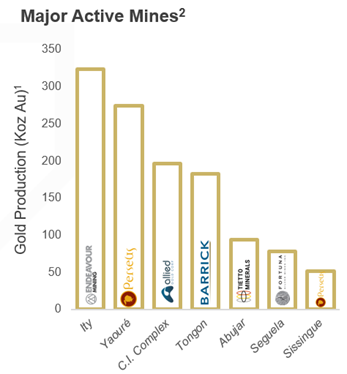 Even though 35% of Birimian Group Rocks can be found in Côte d’Ivoire, the country represents only 7% of the gold produced in West Africa over the past decade.
