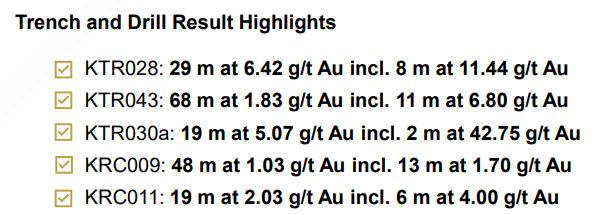 In 2023 Kobo completed 5,988 meters of drilling in 53 drill holes and dug 80 trenches over another 4,500 meters. There is ample room for additional discovery as this activity was focused on just on just northern portion of the Kossou permit.