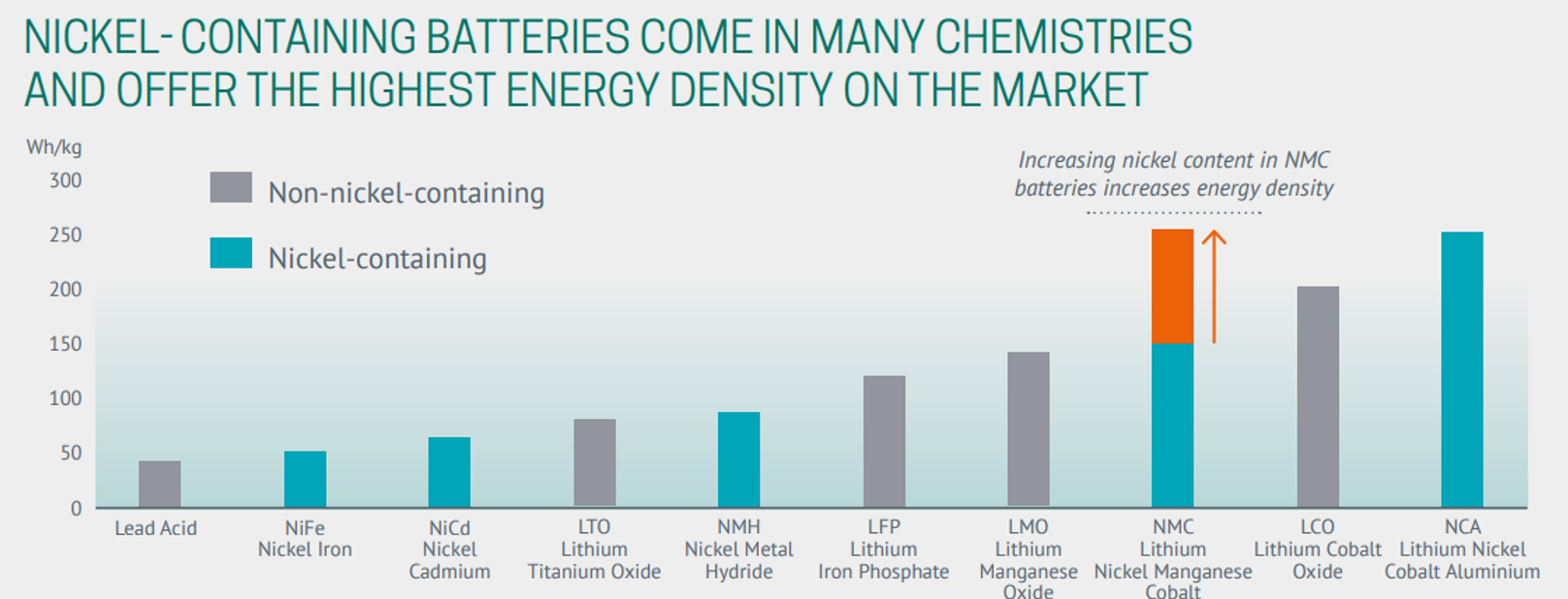With the cathode making up more than 50% of a batteries total cost, nickel’s ability to increase range and power output has been critical in helping bring down the price of batteries overall.