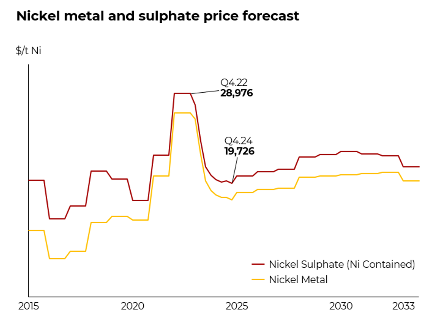Even though rising supply from Indonesia has led to a market surplus and weak prices recently, forecasts from many leading commodity houses and consultants including Benchmark Mineral Intelligence call for near term bottoming in Nickel prices and a gradual recovery.