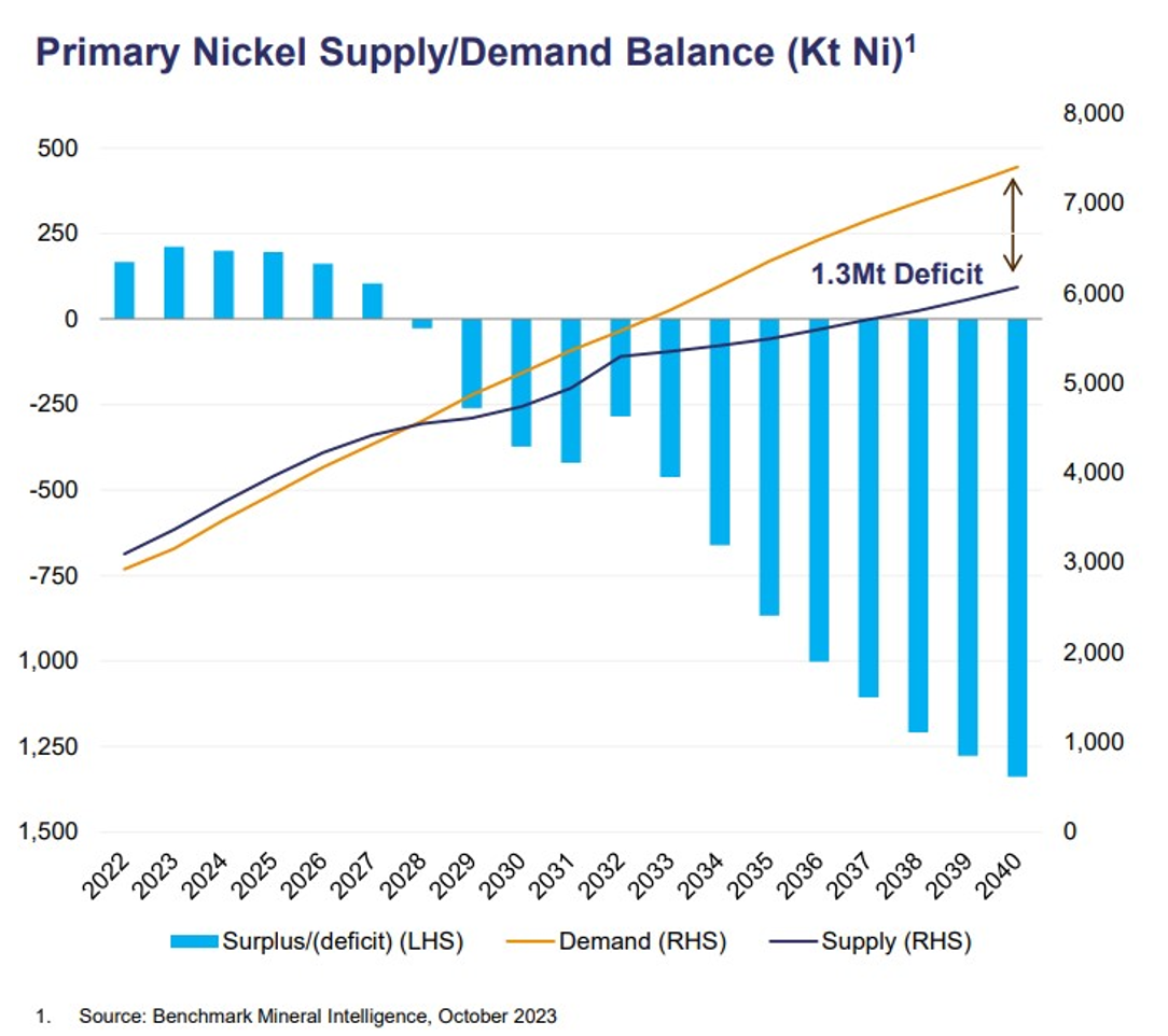 To put this in perspective, the global supply of nickel which is already at a record, will need to almost double by the end of the decade just to meet current renewable and EV demand forecasts.