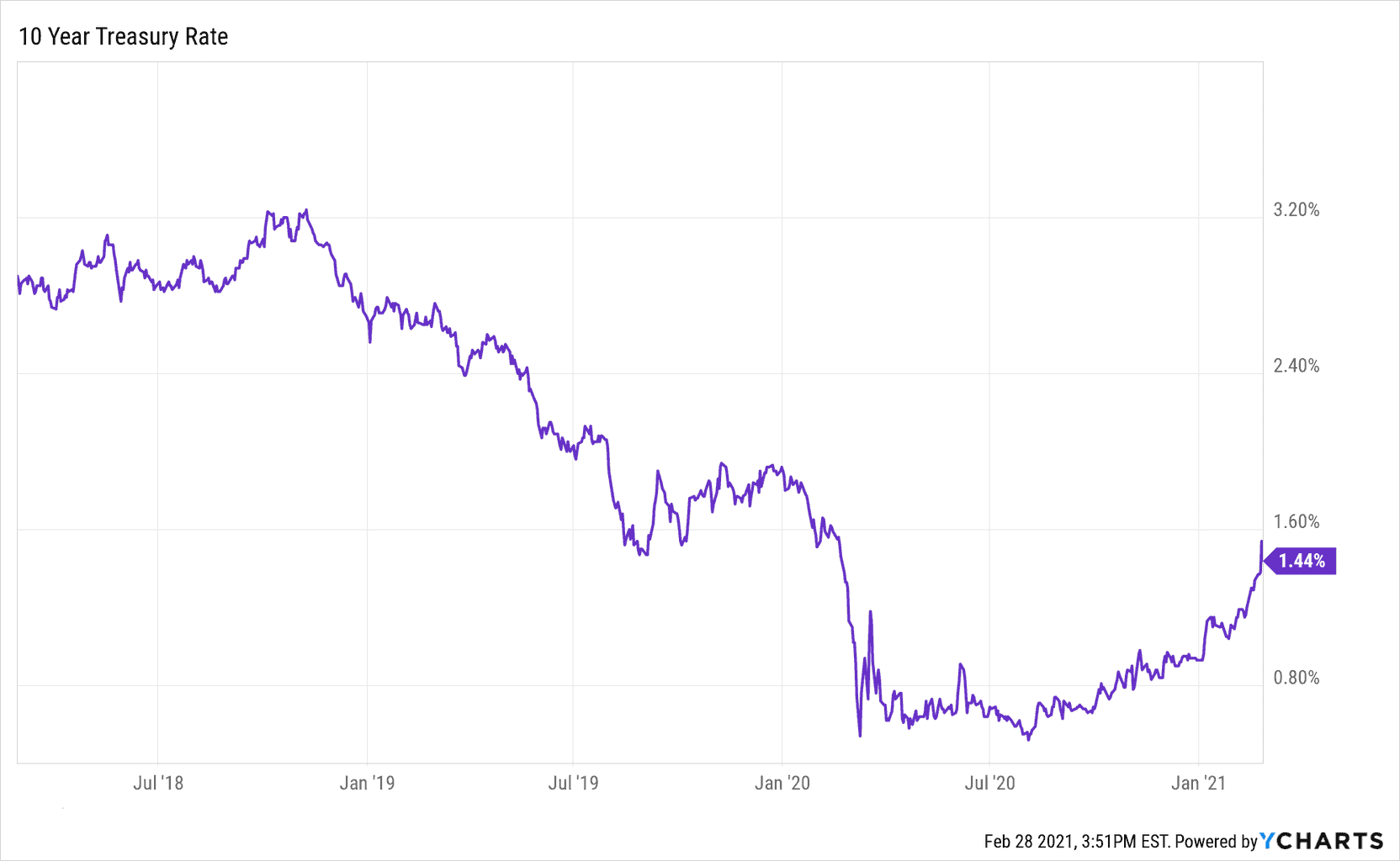 The bond market volatility sent equity markets markedly lower last week, the S&P 500 was down -2.4% and the Nasdaq down -4.9%.