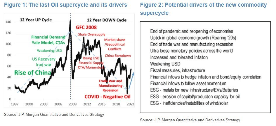 J.P. Morgan highlighted last week that there are ample drivers in place for the start of a new commodity super cycle. Key drivers include: ultra loose global monetary policies, financial measures directed towards infrastructure, investment for metals for new green infrastructure (EVs, batteries) and the reopening of economies post-COVID-19.