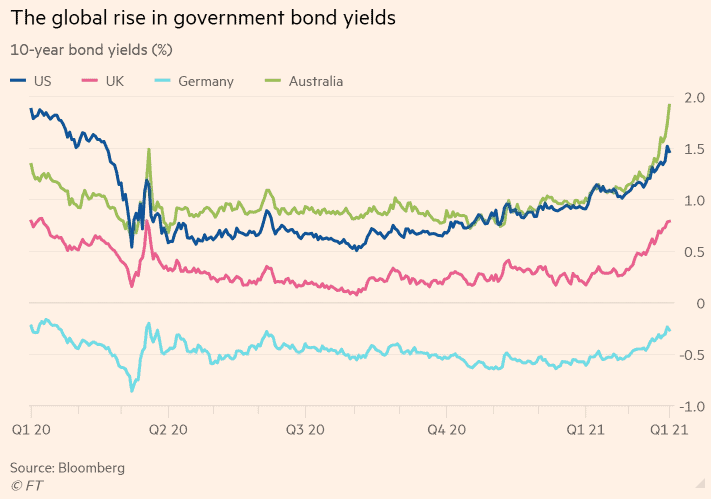 What has spooked the global markets is the rate of change of bond yields in 2021, a phenomenon that is global in nature. The global demand for higher yields is driven by higher inflation expectations.