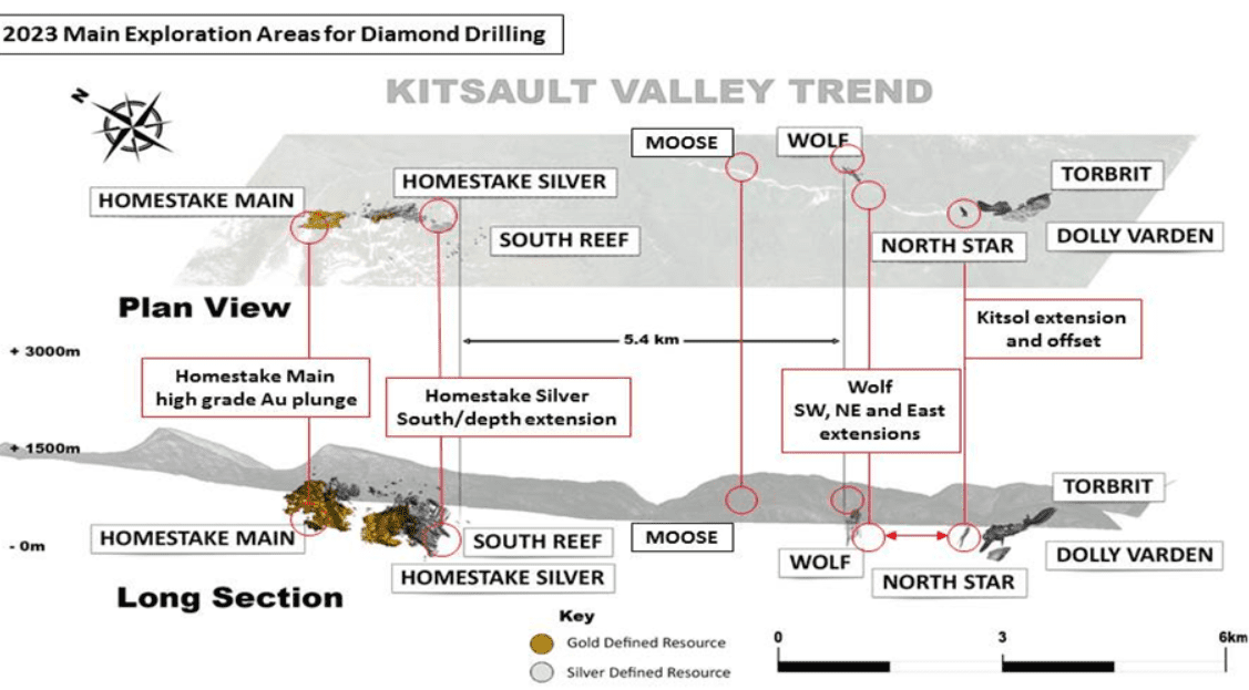 Dolly Varden Silver Corporation (TSXV: DV) (OTC: DOLLF) announced the 2023 Exploration Plans for the Kitsault Valley Project, which includes the Dolly Varden Silver property and Homestake Ridge Gold Silver property. A total of 40,000 to 45,000m of drilling is planned to build upon last year’s successes through further step outs following high grade silver and gold mineralization at the Wolf and Homestake Ridge deposits, as well as appropriately spaced exploration holes to allow the inclusion of new mineralization drilled over the past three drilling programs to be include in an updated Mineral Resource Estimate.