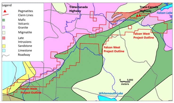 “Falcon West is a project of great potential that has flown under the radar despite its known lithium pedigree and close proximity to the Tanco rare metal mine and mill. It is a rare occurrence in today’s active lithium market when a company can amalgamate such a large mineral claim package with known lithium-bearing pegmatites. The company looks forward to working with local First Nation governments and the Province of Manitoba to increase the lithium economic potential in the region. These are exciting times for the province as it further cements its position as a major, future source of critical metals including lithium and nickel.”