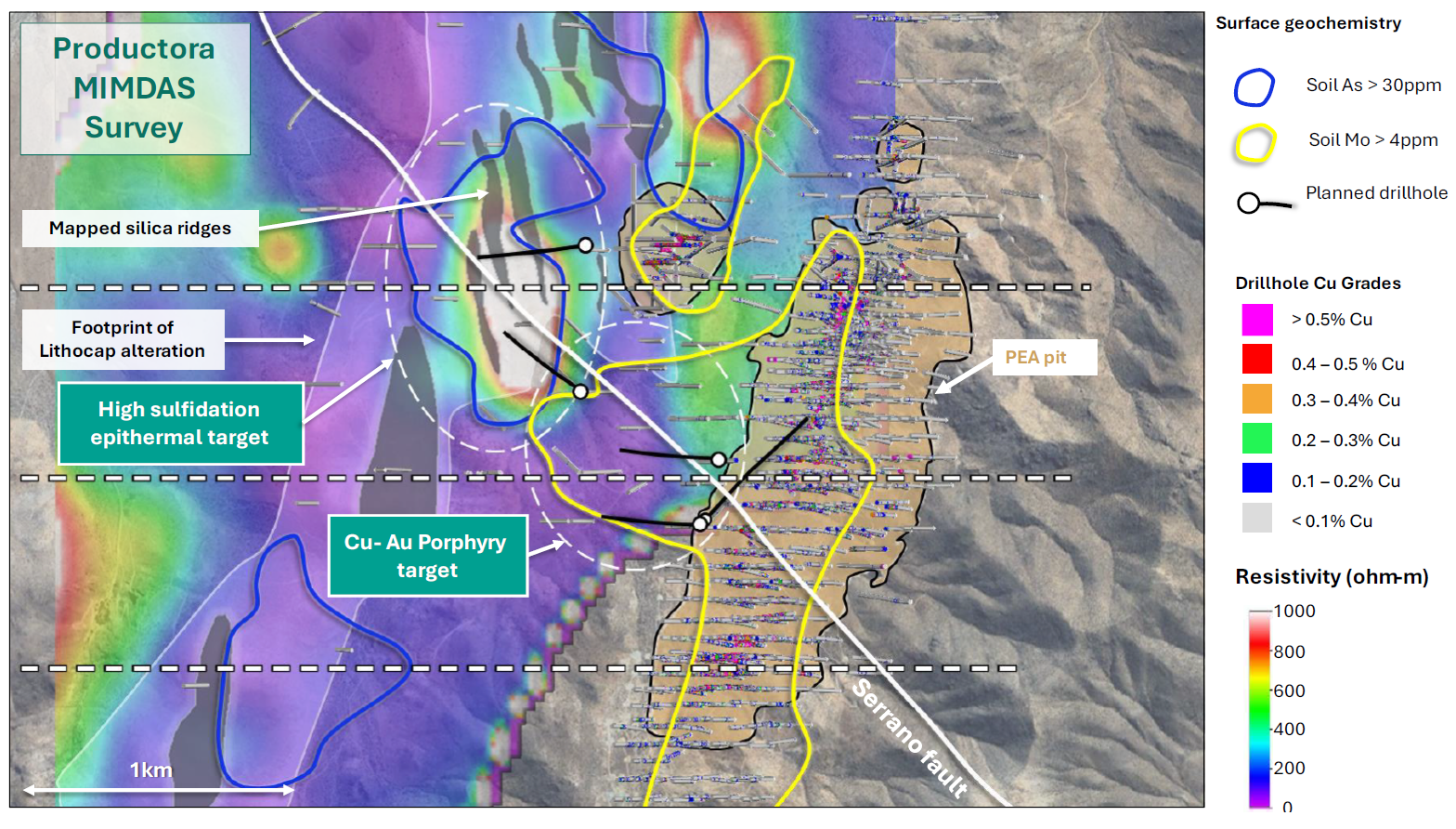 Productora Survey Area and Drillhole Grades