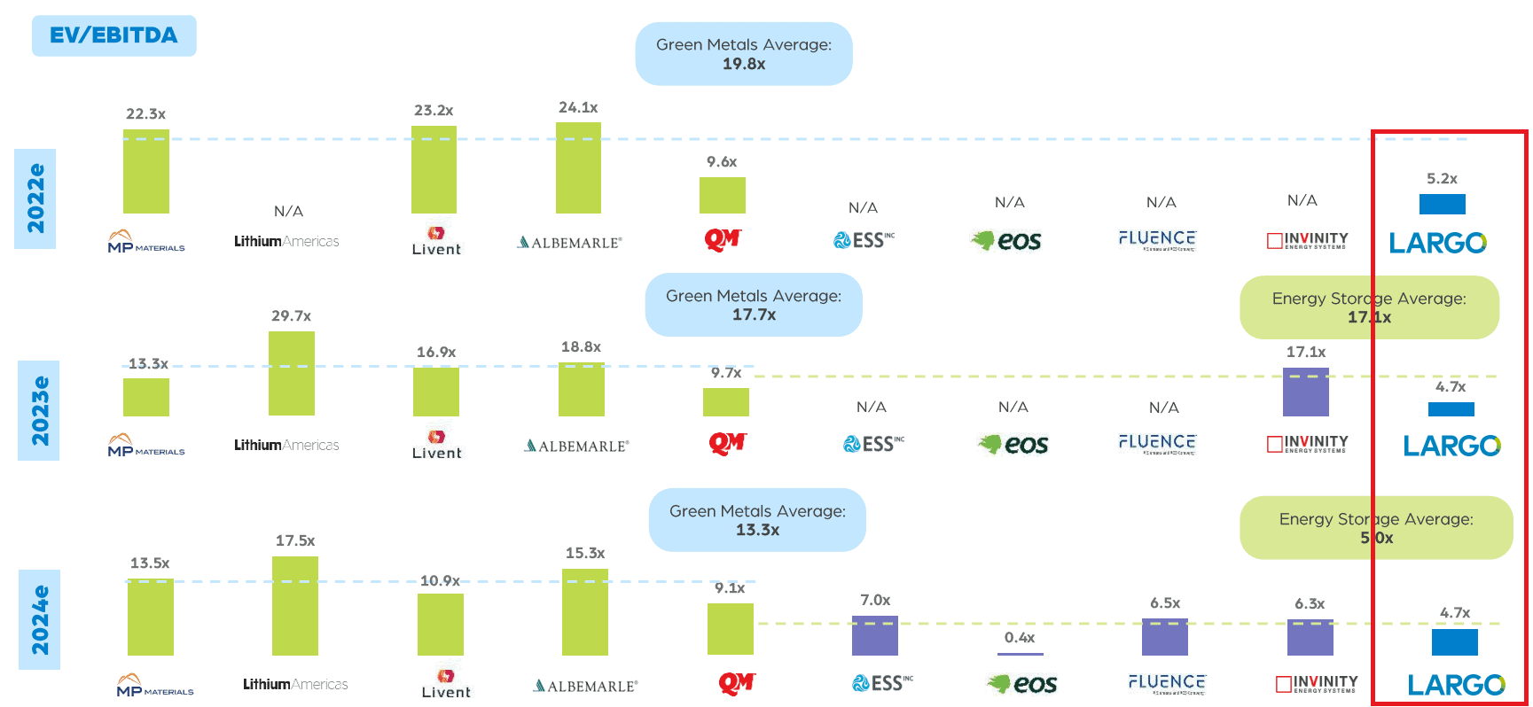 Largo continues to trade at a significant discount to peers in both battery metal mining and battery storage solutions. We like Largo stock here simply because the company will see a significant operational turnaround in 2023, however the company also offers investors a heavily discounted way to invest in the electrification of transportation and energy generation, the two defining trends of this decade.