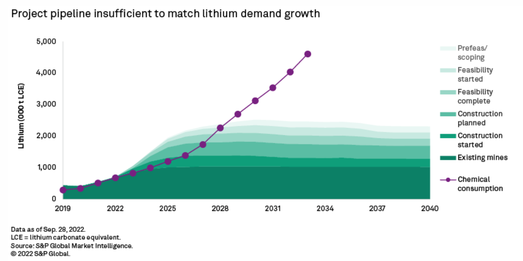Even if all 53 global lithium projects in the pipeline were to be developed, there will still be a supply gap of 500,000-800,000 tons, or 20% of demand in 7 years according to Albermarle and S&P Mining Intelligence.