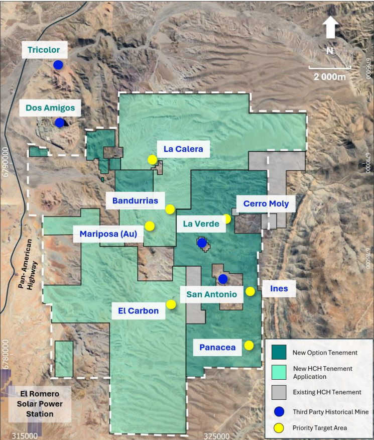 • Ground Magnetics geophysical survey, surface soil sampling and geological mapping underway across the recently consolidated Domeyko landholding (Domeyko), located 30km south of Costa Fuego