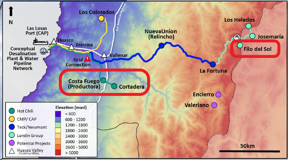 • Hot Chili and its partner, Chilean iron ore company Compania Minera del Pacifico (CMP), have established a new water company called “HW Aguas para El Huasco SpA” (Huasco Water)