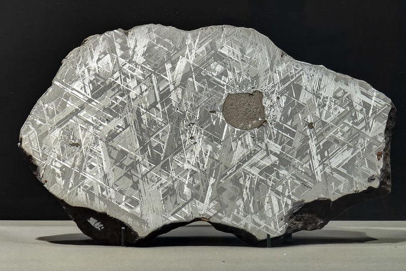 "Iron-nickel meteorite (USNM 6071), Smithsonian Natural History Museum, Washington DC; Original locality, Harriman, Tennessee" by Chuck Sutherland is marked with Public Domain Mark 1.0.