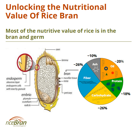 The rice we eat is void of nutrients compared to the nutrient rich bran and germ; Ricebran unlocks the value of this nutrient rich layer to expand its uses. The bran and germ are non-GMO and allergen free which aligns with many of the healthy living trends and products in the market today. The company states the addressable market in wellness foods and supplements is north of $880 million.