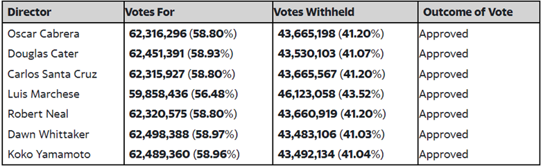 Jose Vizquerra, Steven Dean and Dionisio Romero did not stand for re-election at the AGM. They have been long-standing members of the Board and have seen Sierra through several expansions and growth initiatives. Jose joined in 2017 and served as Chair for the past year. Steven has served on the Board since October of 2011 and Dionisio has been a member of the Board since 2015.