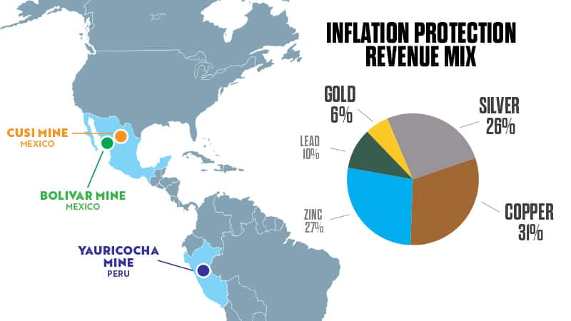 Metals that provide inflation protection versus inflation made up 63% of total revenue for the quarter: copper, (31%), silver (26%) and gold (6%).