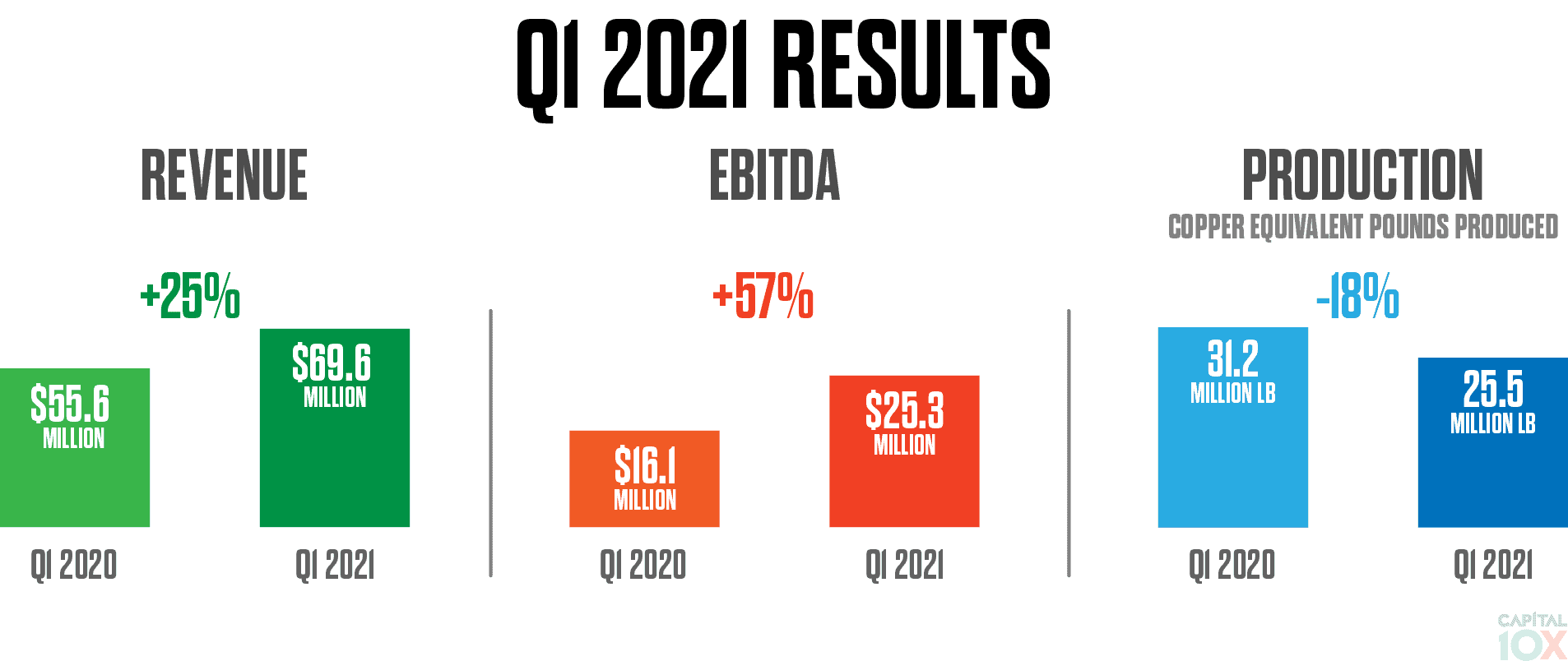 - On a copper equivalent basis, production fell -18% to 25.5 million pounds – due to direct and indirect challenges faced from COVID-19.