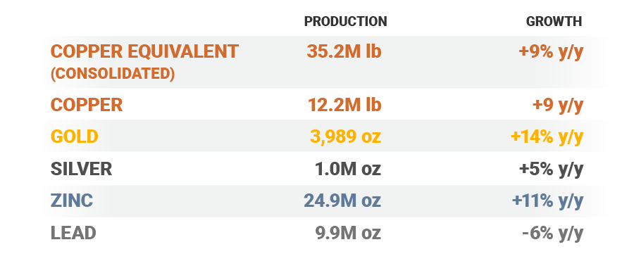 Despite the challenging operational backdrop of 2020 with the headwinds of COVID-19, Sierra Metals was able to quickly restart operations and deliver record quarterly production of 35.2 million pounds of copper equivalent production – an increase of +9% year-over-year.