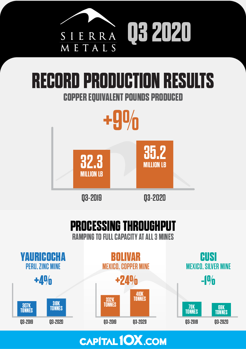 On October 14th Sierra Metals (NYSE:SMTS, TSX:SMT) announced record quarterly production results for Q3 2020.
