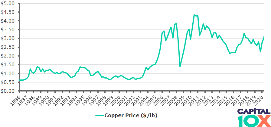During the last 10 years, the average copper price was $3.00/lb and in the last 20 years the average copper price was $2.50/lb; there’s inherently a high operating margin of safety in at the Bolivar mine relative to historic copper prices.