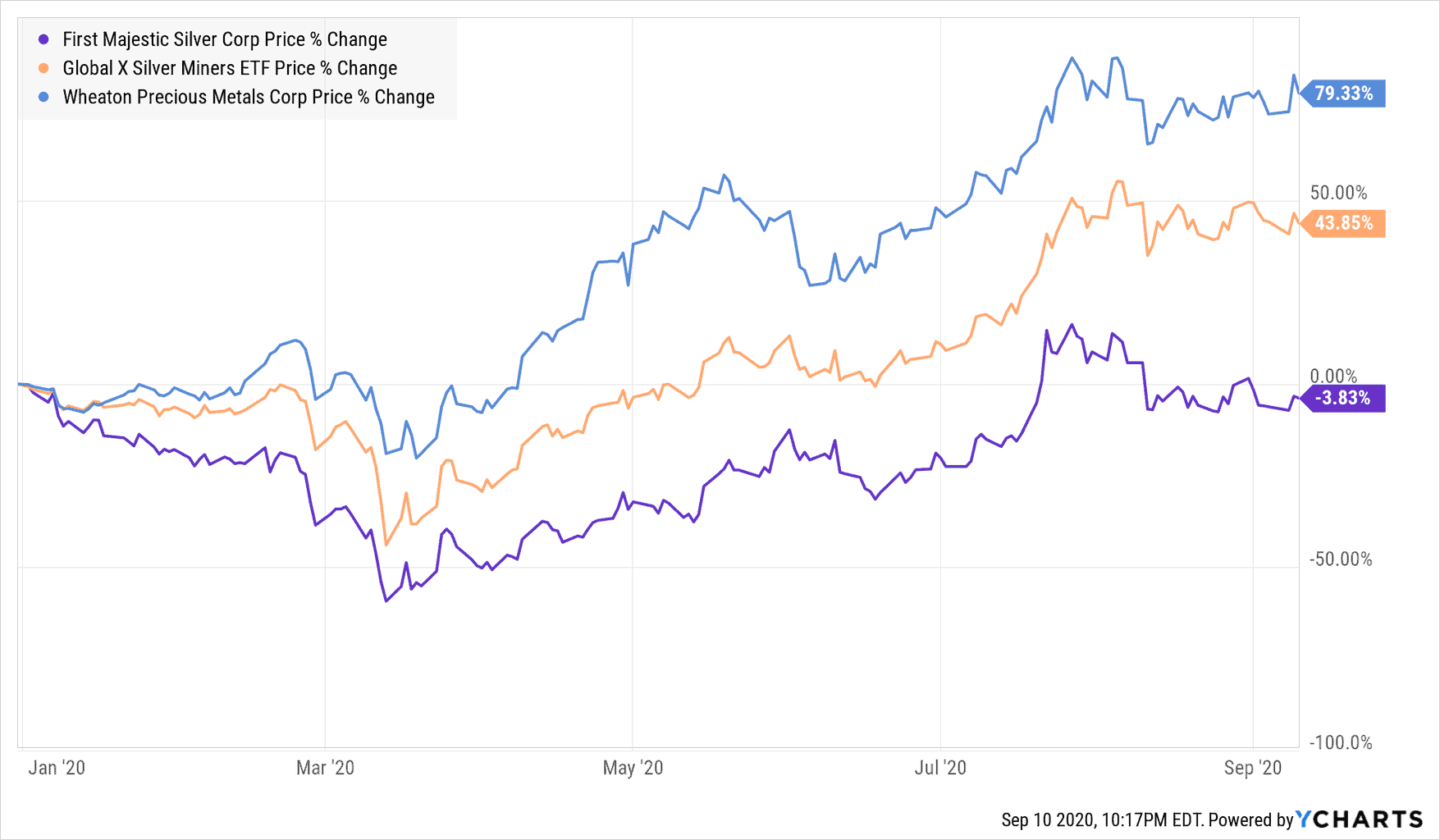 The Global X Silver Miners ETF (NYSE:SIL) is up 44% year-to-date while First Majestic is down 4%. There could be a very powerful catch-up trade here for a company with an above average exposure to silver metals revenue.