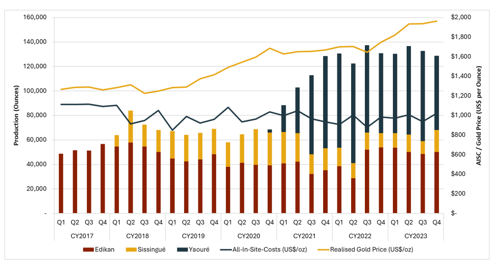 Below we’ve highlighted two operators, one producer and one explorer, which look particularly interesting. Though this is in no way an exhaustive list of gold investment opportunities, Côte d’Ivoire has to offer.