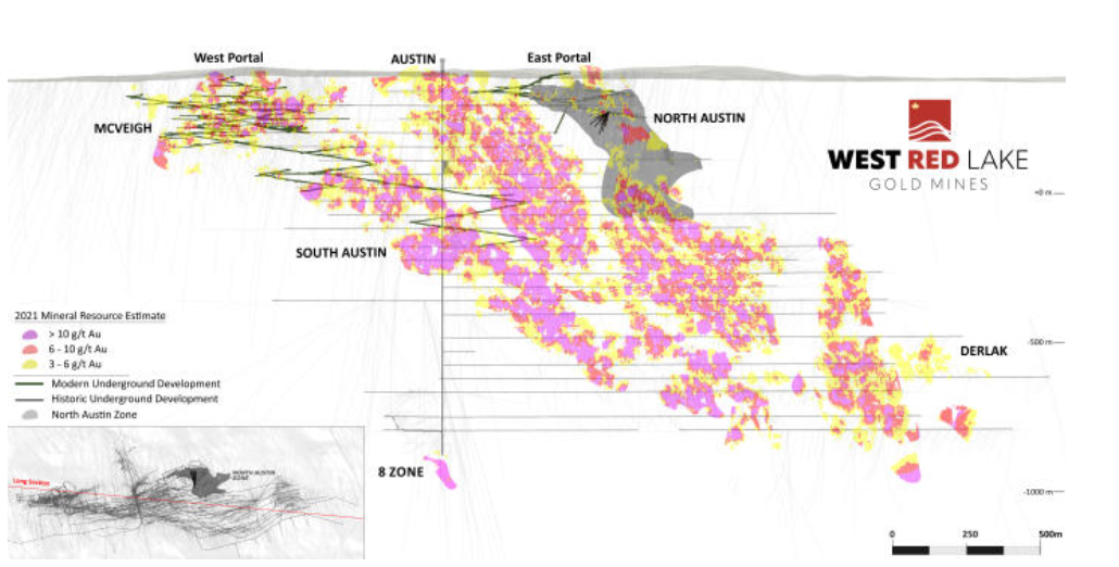 This round of drill results from the Madsen Mine were all drilled from underground on the North Austin Zone, which represents a new area of high-grade mineralization extending the current Madsen resource to the northeast. This program was designed to expand the North Austin zone down-plunge to the northeast.