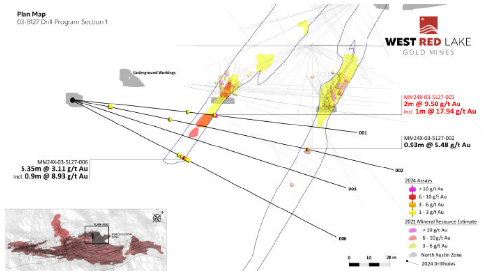 FIGURE 3. North Austin plan view drill section showing assay highlights for Holes MM24X-03-5127-001 through -011.[1]