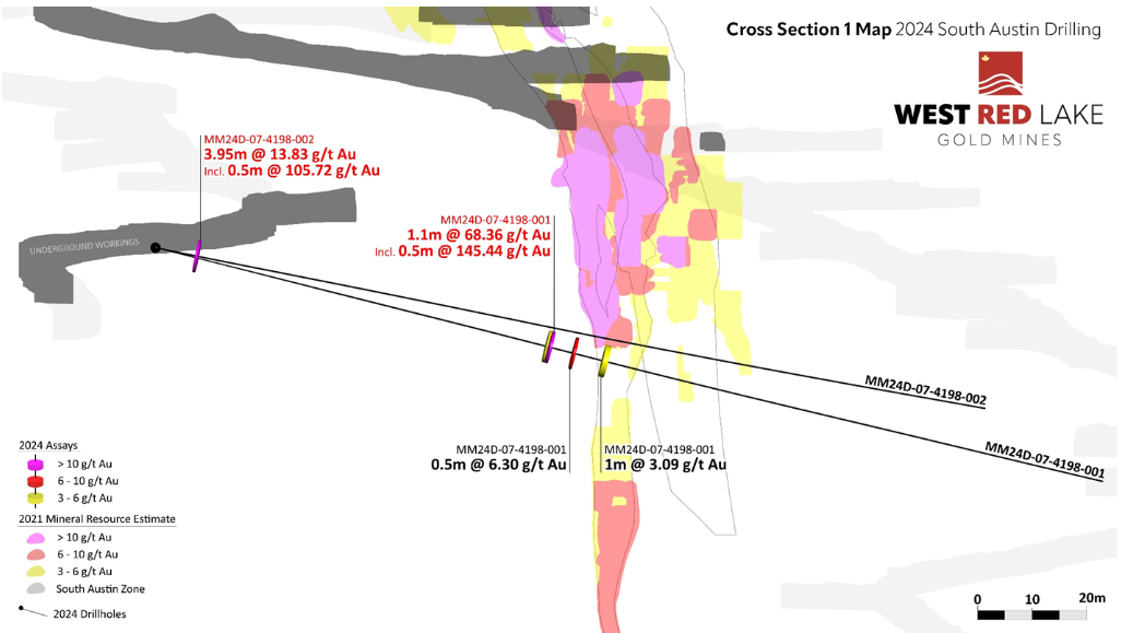 We are very pleased with the results that have been coming out from the South Austin definition program. The team has been intercepting zones of mineralization where expected, which is helping to increase our confidence in the higher priority areas of the resource model and validates our interpretation of the geology. Now that we have added a second underground drill at North Austin, we expect to be generating a steady stream of positive news flow from North and South Austin over the coming months.Shane Williams, President & CEO, West Red Lake Gold Mines Ltd.