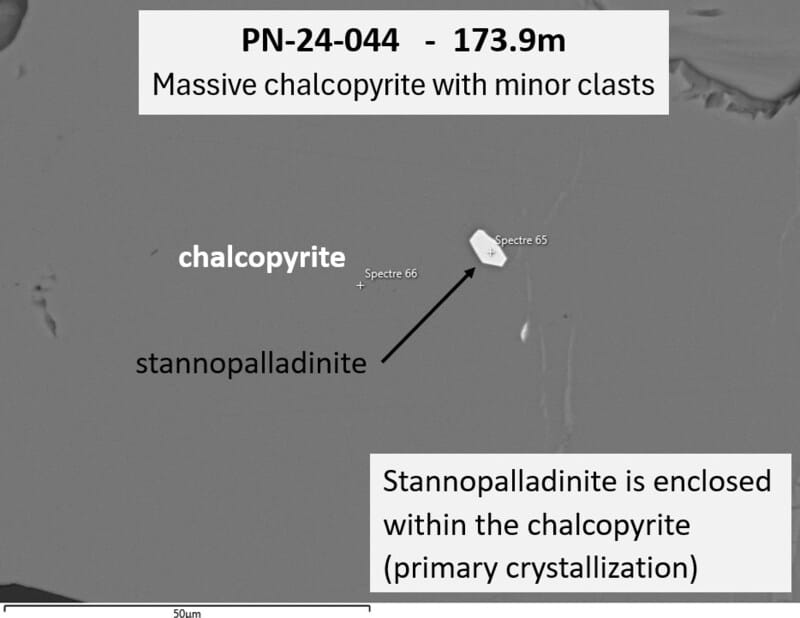 Figure 2 – Scan of PGE Stannopalladinite hosted in massive chalcopyrite (CNW Group/Power Metallic Mines Inc.)