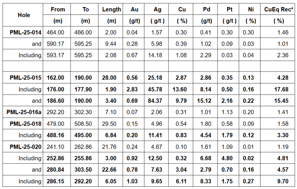 Previously released drill results are available in a public database accessible as a download on Power Metallic’s website. Currently this database contains hole assay and collar information up to hole PML-25-013 and will be updated as soon as possible with all remaining publicly released holes.